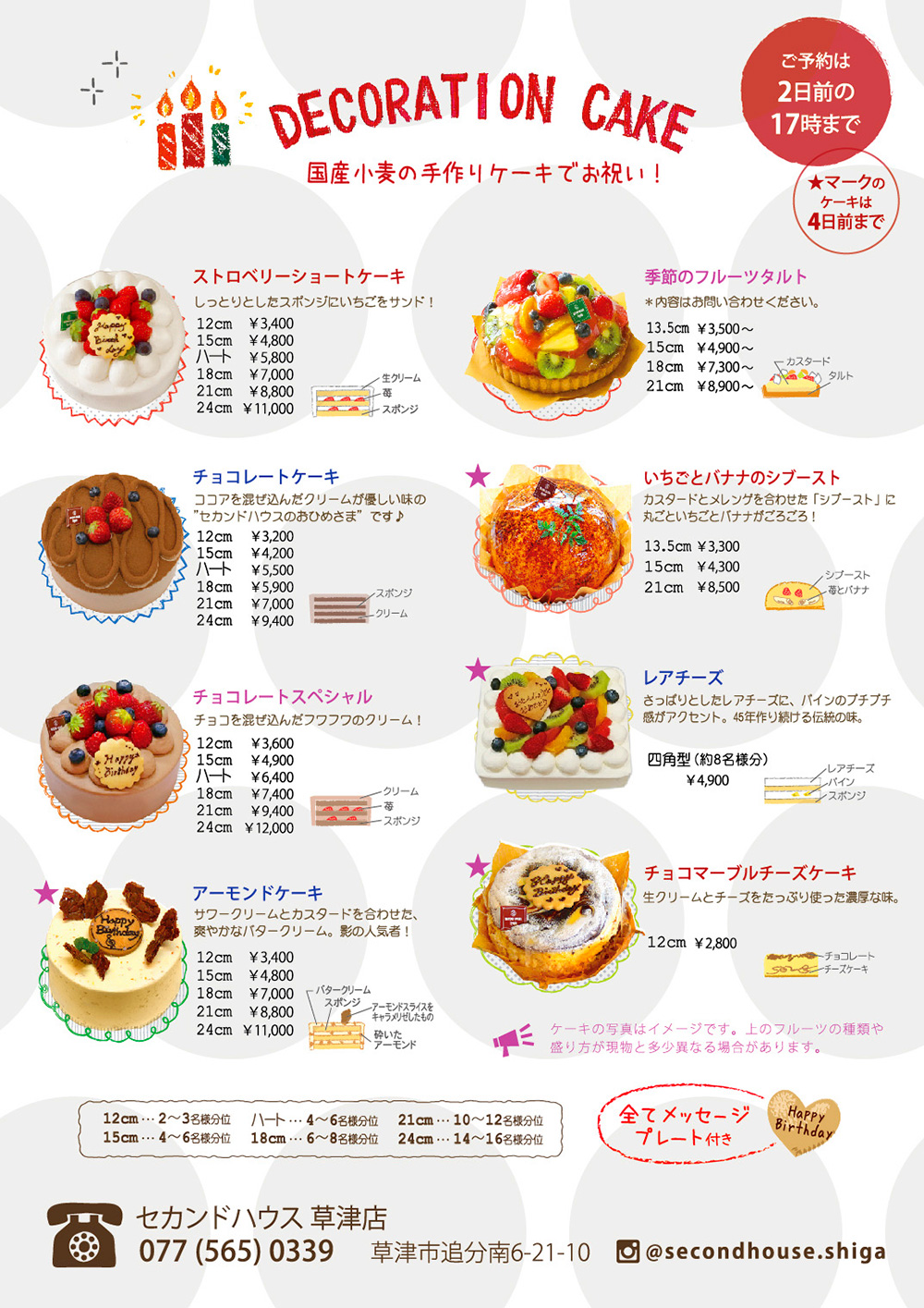 ※ 受付日数は目安です。イベント中など、記載のお日にちでは承りかねる場合がございます。お早めのご予約をお願いいたします。